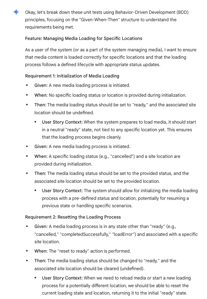 Interestingly, generative AI can deduce features and their scenarios by analyzing unit tests of these individual components, in conjunction with application code.